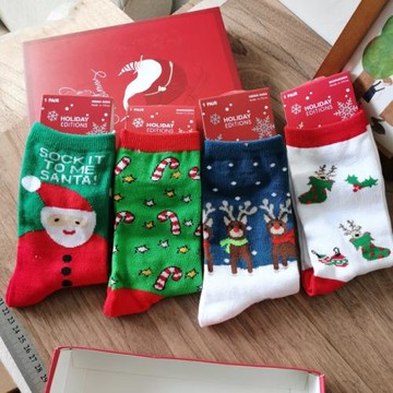 純棉女圣誕襪4雙一盒純棉圣誕老人襪子卡通可愛