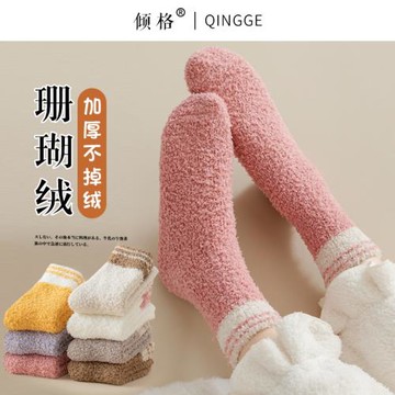 珊瑚絨襪子女秋冬加絨加厚居家地板睡眠襪中筒月子襪長筒保暖冬季