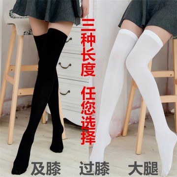 75cm春秋寬松加長綁帶大碼白色天鵝絨長筒襪加肥胖mm防滑高筒襪
