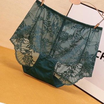 新款全蕾絲內褲女 性感高腰三角褲透明中高腰包臀大碼青年純棉襠