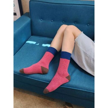 韓國東大門Aileen中筒襪女襪羊毛混紡彩點拼色秋冬加厚樂福鞋襪子