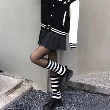 黑白條紋小腿襪套JK堆堆襪女冬保暖中筒腿套日系Lolita學院風襪套