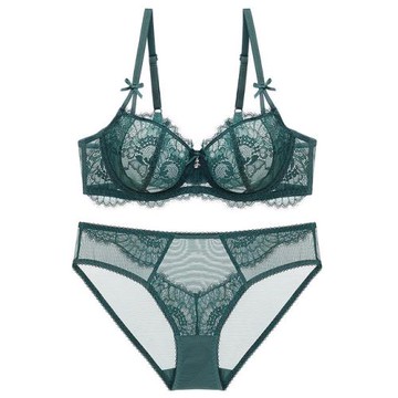 2024新款夏季性感蕾絲內衣內褲套裝女薄款舒適透氣大碼文胸墨綠色