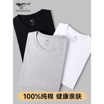 七匹狼純棉t恤男睡衣男士單件上衣短袖家居服夏季白色薄款可外穿