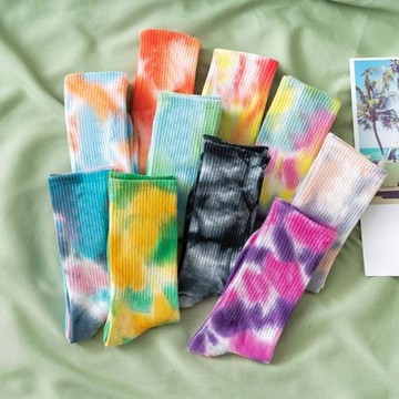 豐華扎染中筒襪子男純棉ins潮長襪街頭歐美滑板棉襪籃球運動漸變