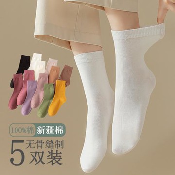 襪子女秋季中筒無骨襪純棉ins潮百搭長襪百棉抗菌春秋季長筒純色