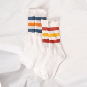 JOUGAI 夏季日系復古條紋米白外穿高幫堆堆中筒純棉襪子男生潮ins