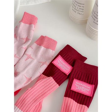 甜美粉色襪子女純棉中筒襪韓國個性百搭可愛長筒運動襪日系學院風