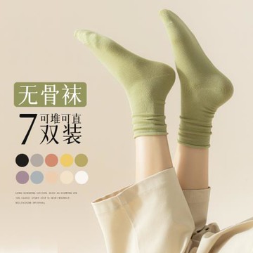 堆堆襪子女中筒襪潮日系純色女士長襪無骨松口月子長筒棉襪春秋季