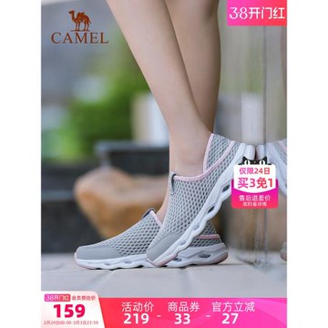駱駝戶外休閑女士一腳蹬女鞋夏季網鞋網面舒適媽媽鞋運動鞋健步鞋