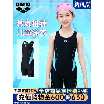 Aren兒童泳衣女連體平角中大女童專業訓練競速運動學生青訓游泳衣