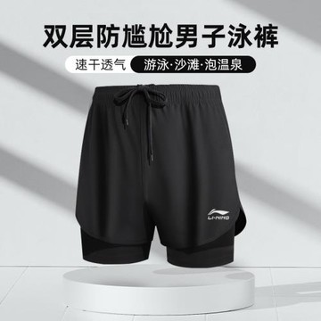 李寧男士泳褲2024新款雙層防尷尬泳褲男款五分游泳褲套裝溫泉褲
