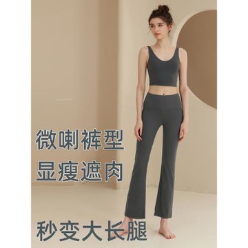 微喇瑜伽褲女春夏新款提臀運動褲子健身跑步小個子喇叭九分褲套裝