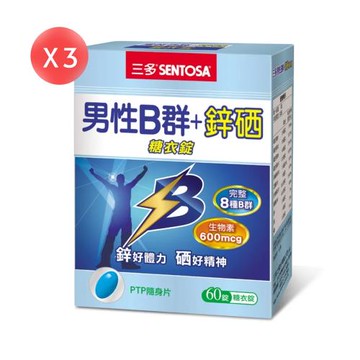 點我下載【SENTOSA 三多】男性B群+鋅硒錠 60錠X3盒 (共180錠)