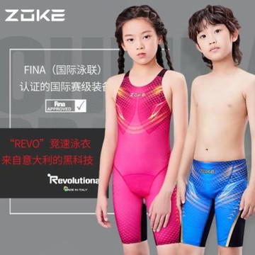 洲克兒童連體五分泳衣專業比賽訓練游泳衣zoke青少年競速泳裝女童