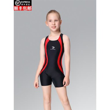 中大女童連體平角學習訓練游泳衣女溫泉兒童專業競技比賽考試泳裝