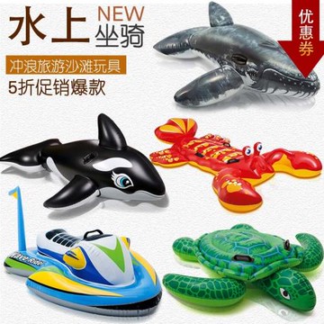INTEX大型水上動物充氣坐騎兒童玩具 超大海龜藍鯨座騎成人游泳圈