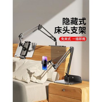 免夾隱藏式床頭手機支架適用ipad平板電腦支撐架桌面懸臂懶人支架