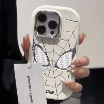 銀色蜘蛛俠適用蘋果17promax手機殼金屬鏡框iPhone16pro動漫15PM彩繪情侶男女款14高級感17pro全包防摔保護套