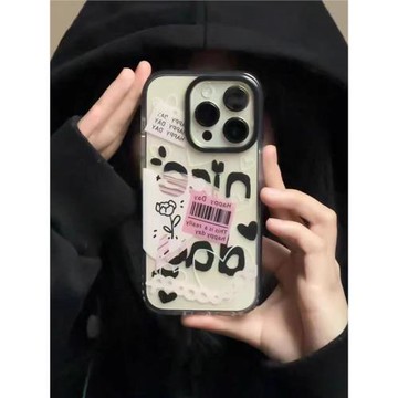 高級感個性創意涂鴉鏈條愛心適用iPhone15proMax手機殼蘋果15黑邊防摔條14pro硅膠軟殼11/12情侶x/xr保護殼14