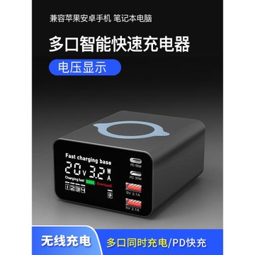 萬隆欣多口usb充電器快充PD65W數顯電流屏幕無線充適用于安卓蘋果iPhone手機通用ipad平板筆記本桌面充電插座