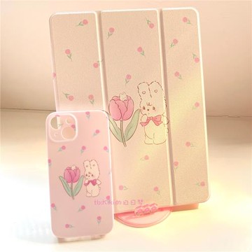 kiki白日夢/珍妮兔兔適用于ipad保護殼平板保護套air611寸 可愛兔子亞克力防摔郁金香花花兔子