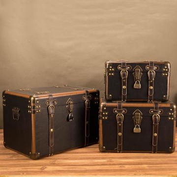 歐式復古手提箱儲物木箱子衣服收納箱老式皮箱旅行攝影道具整理箱