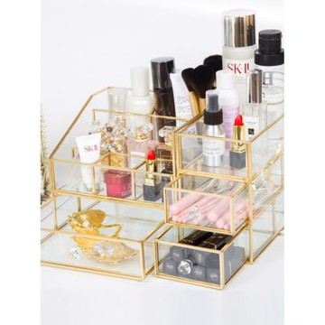 點我下載歐式簡約桌面化妝品收納盒玻璃家用護膚品口紅香水整理盒置物架