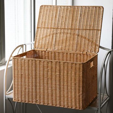 塑料藤編大容量帶蓋收納筐柜子方形整理收納箱宿舍被子衣物整理籃