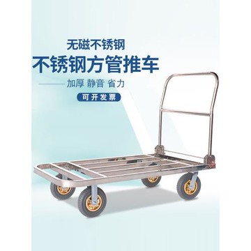 不銹鋼方管平板手推車拉貨車搬運推貨車輕音折疊小推車拖車小拉車