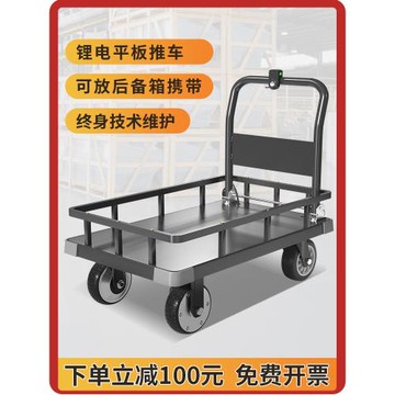 電動四輪平板車手推車個工地搬運車進電梯搬家小推車拉貨拖車折疊
