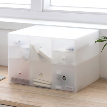 磨砂抽屜式桌面收納系列 07 桌面收納 兩層套裝 磨砂透明白 2層