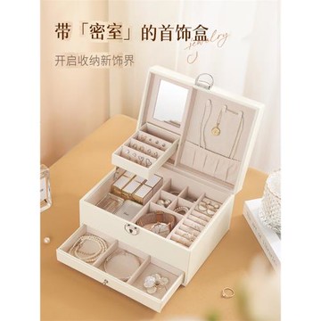高檔多層防氧化首飾盒帶鎖大容量耳環項鏈飾品收納盒送人生日禮物