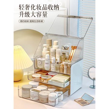 點我下載化妝品收納盒防塵抽屜透明盒子桌面口紅護膚梳妝臺置物架亞克力箱
