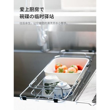【慢慢家居】304不鏽鋼-可伸縮廚房水槽雙層瀝水架 (碗盤瀝水架 水槽收納架)