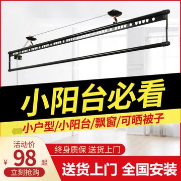 小戶型飄窗陽臺升降晾衣架手搖晾衣桿單桿式室內家用雙桿晾衣架