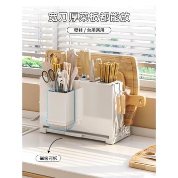 點我下載廚房刀架筷子籠菜板一體置物架砧板臺面菜刀具瀝水壁掛刀座收納架