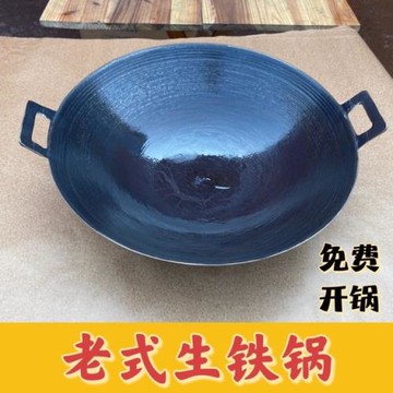 老式鑄鐵雙耳炒鍋無涂層圓底鍋生鐵鍋家用炒菜不粘鍋商用火鍋干鍋