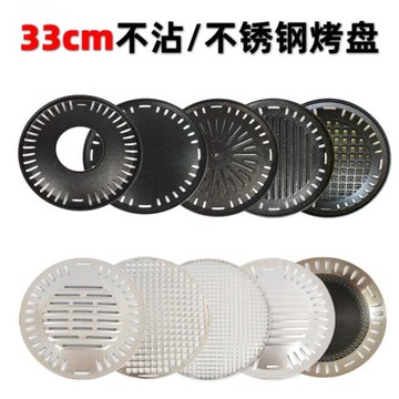 韓式烤盤燒烤烤肉盤33cm不沾烤盤不銹鋼烤盤圓形燒烤篦子燒烤盤