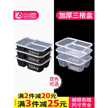 500/650/750ml三格長方形餐盒一次性外賣打包盒飯黑色透明快餐盒
