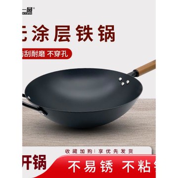 2023新款純手工鐵鍋老式鐵鍋廚房家用炒鍋不粘鍋無涂層炒菜鍋356