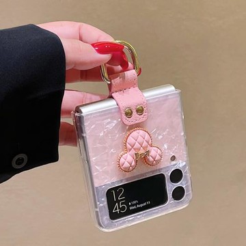 斜挎掛繩適用三星zflip4手機殼折疊屏指環防摔軟殼Galaxy w23 flip手提鏈條背帶f7210夢幻少女zflip3粉色貝母