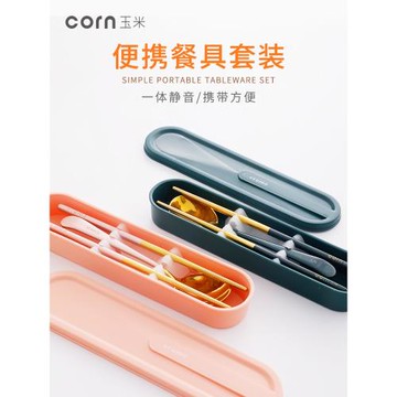 玉米不銹鋼兒童筷子勺子套裝收納盒單人學生外帶便攜式一年級餐具