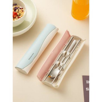 316不銹鋼筷子勺子套裝一人用便攜餐具單人裝筷勺叉學生三件套