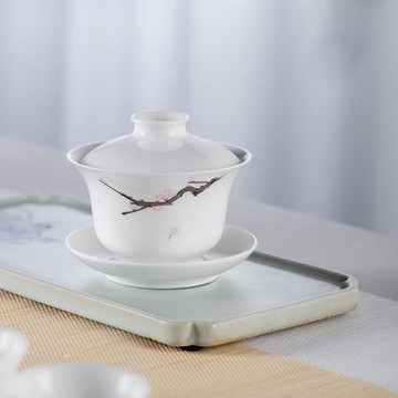 德化白瓷手工陶瓷蓋碗茶杯大號泡茶三才碗 功夫茶碗套裝家用單個