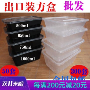 長方形1000ml出口裝黑色一次性餐盒透明便當打包外賣加厚快餐盒