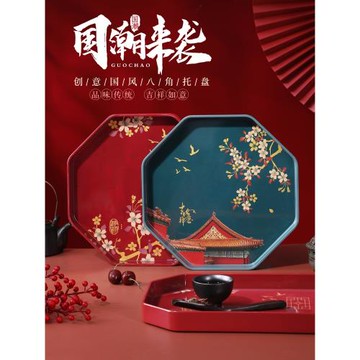 希爾中國風結婚長方形托盤家用創意客廳敬酒敬茶托盤八角盤托盤