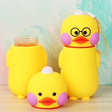 韓版羞羞鴨卡通保溫杯兒童可愛創意水瓶學生女提繩便攜隨手防摔漏