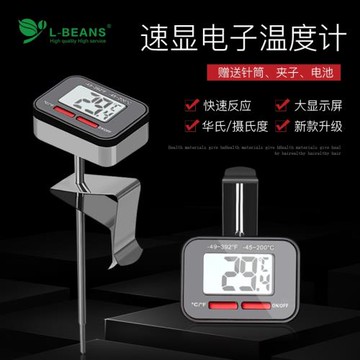 L-BEANS不銹鋼電子大屏咖啡溫度計手沖咖啡奶泡拉花掛耳式溫度計