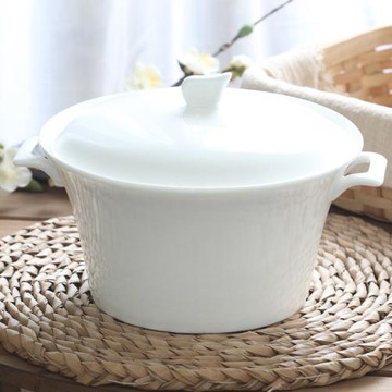 高檔帶蓋雙耳湯盆品鍋陶瓷餐具創意大號家用大碗骨瓷湯碗純白無鉛